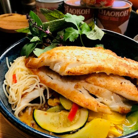 Sweet, mild tilapia lends itself well to the bold flavors in this taco. Chef Andrew dresses this taco with an El Salvadoran pickled cabbage slaw called curtido, which brightens up the flavors; and a chipotle mayo which brings some heat and silkiness to this otherwise lean fish.