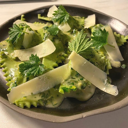 This dish is a bit time-consuming, but with all this free time most of us have found ourselves with, the effort will be worth it. Stinging nettles are just starting to pop up in New England, and they compliment the flavor of lobster very well.