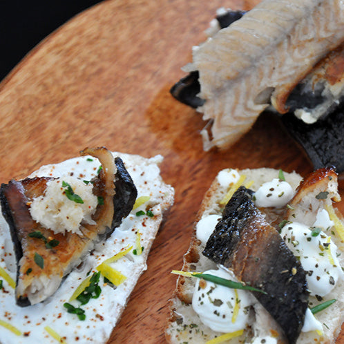 Eels have a rich history of connection with cultures and recipes all over the world. Smoked eel is a great addition to a seacuterie platter, or use it to top a salad, or as an accent to add a smoky richness to dishes. This smoked eel is ready-to-eat, but a trip to the pan to warm it up and render the layer of fat under the skin turns it into the bacon of the sea. Try it on baguette slices with crème fraiche and a bit of horseradish.