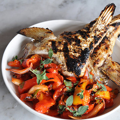 Chef Box Series: Striped Bass Collars with Pepperonata